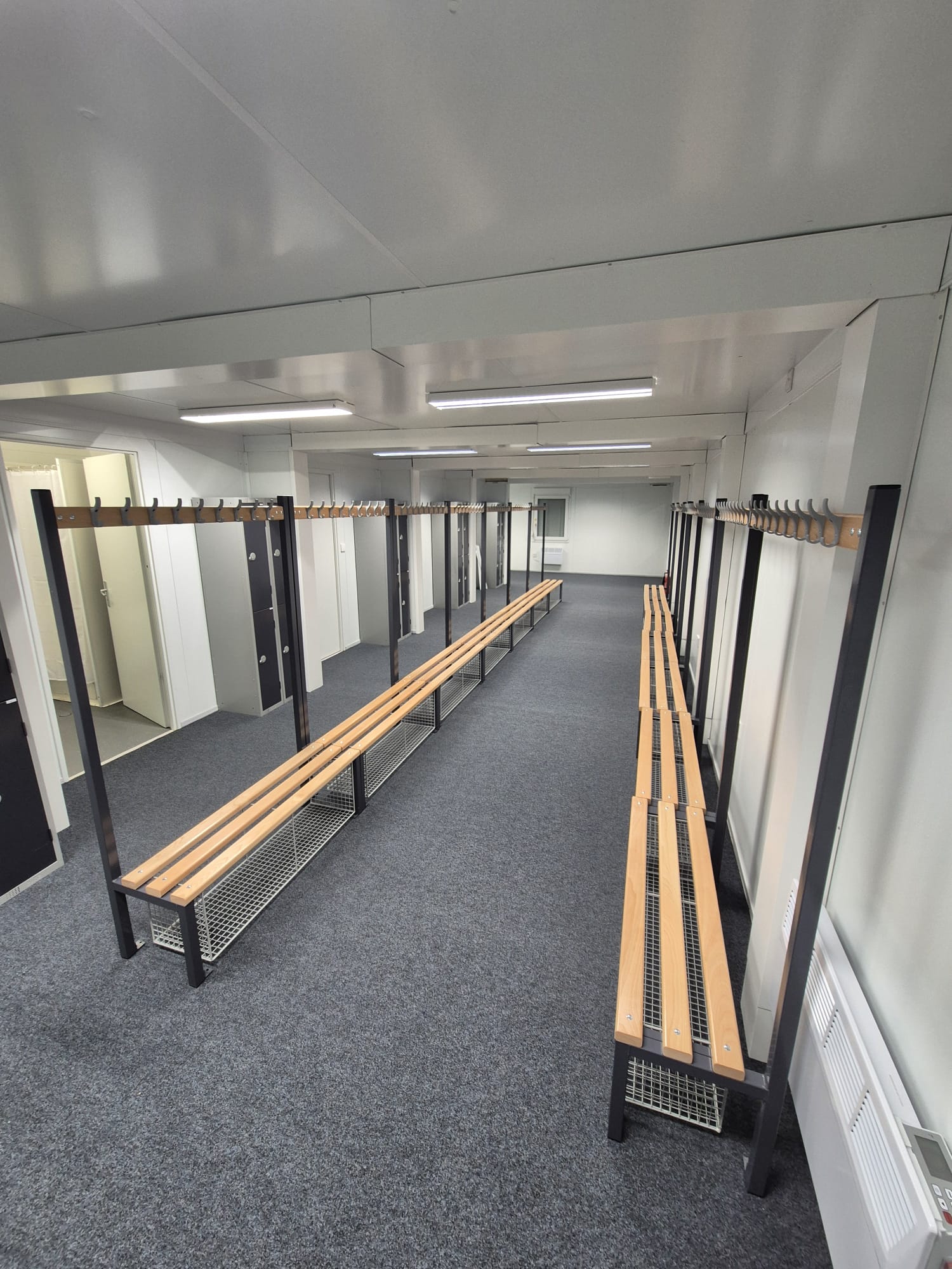 - Benches for the changing rooms, including integrated shoe racks